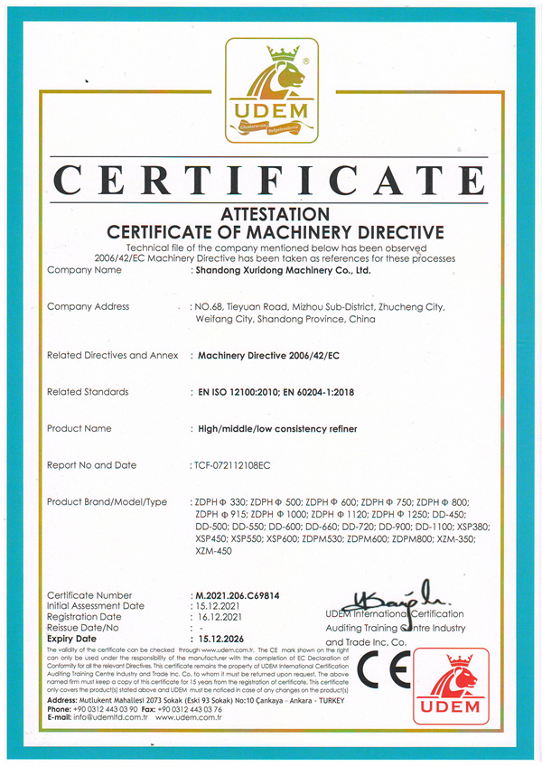 高中低浓磨浆机ce证